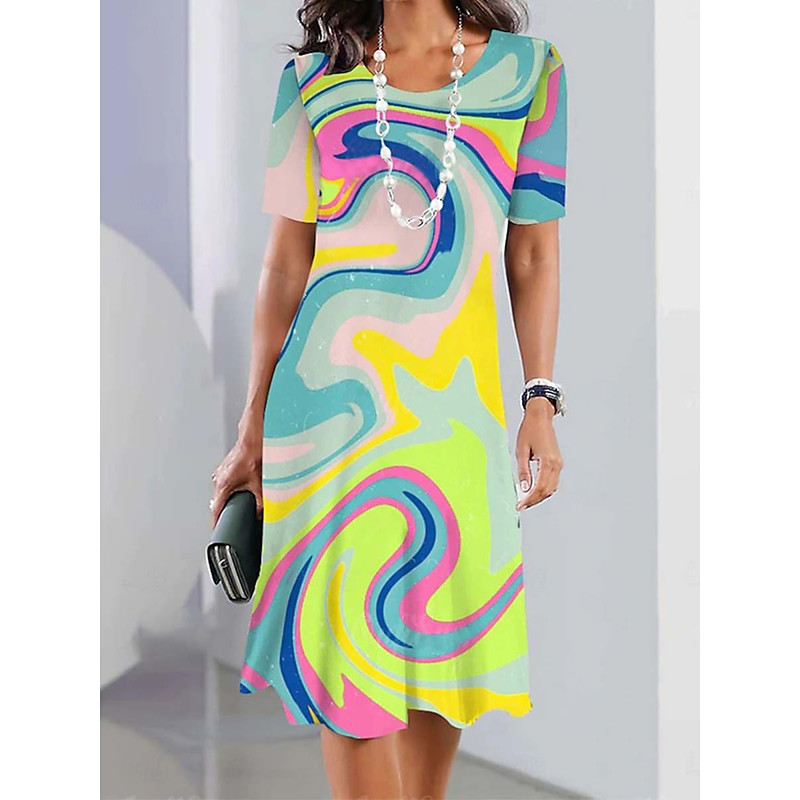 Women's Midi Dress Sundress Casual Outdoor Going out Regular Fit Ombre Color Block Short Sleeve V Neck Black Pink Orange Green Summer
