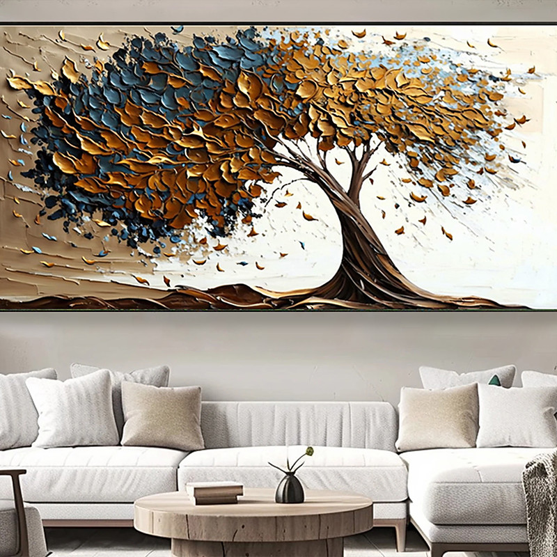 Large Gold Tree Landscape Oil Painting On Canvas Original 3D Textured Nature Forest Wall Art Living Room Wall Art Decor Gray Art Unframed