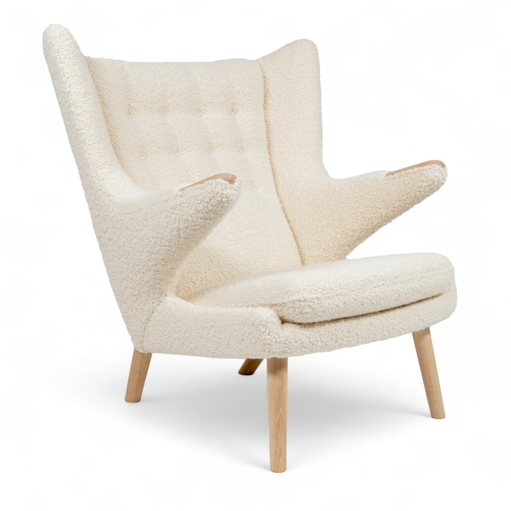 PP Möbler - PP19 Papa Bear Chair - Ben & Armstöd: Ask såpad - Klädsel: Dedar/Artemidor 001 - Hans J. Wegner - Vit - Trä