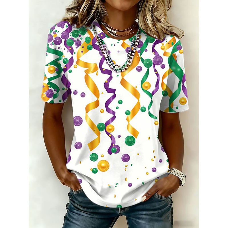 Carnival Mardi Gras Women's T Shirt Graphic Vintage Fashion Stylish Short Sleeve Crew Neck Regular Tops Daily Print Black and Red White Yellow Light Green Purple Summer Spring
