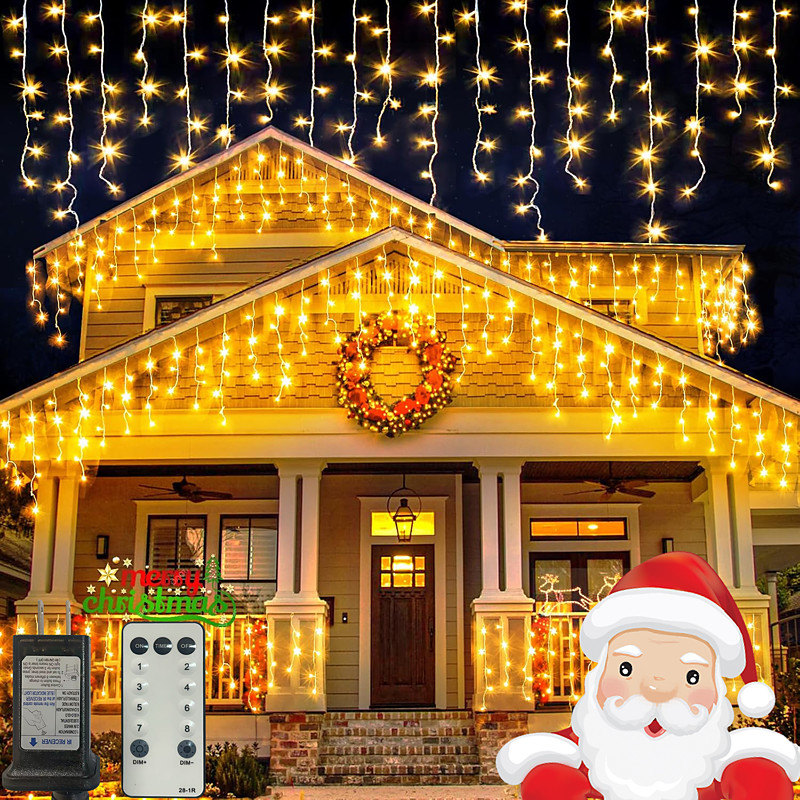 Christmas Icicle Lights 33ft 400 Leds 48 Drops 8 Function Timer Remote Control Clear Wire Connectable String Lights Holiday Wedding Party Decorative Lights Low Voltage Safe Plug in