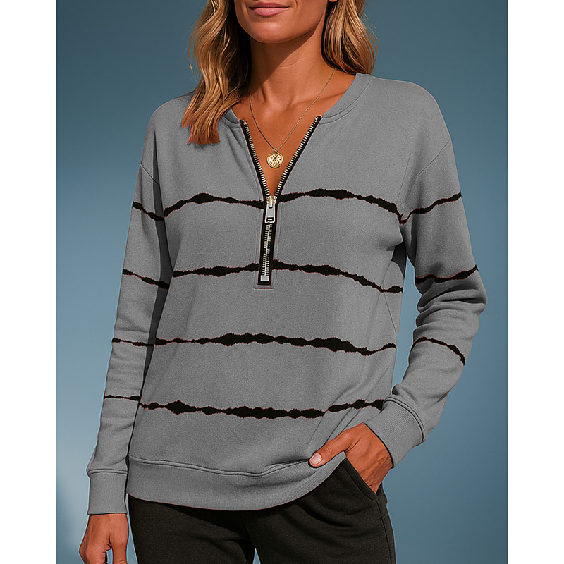 Women's Pullover Sweatshirt Casual Tops Half Zip Long Sleeve Top Athleisure Fall V Neck Stripes Fashion Outdoor Travel Sportswear Activewear Black White Pink