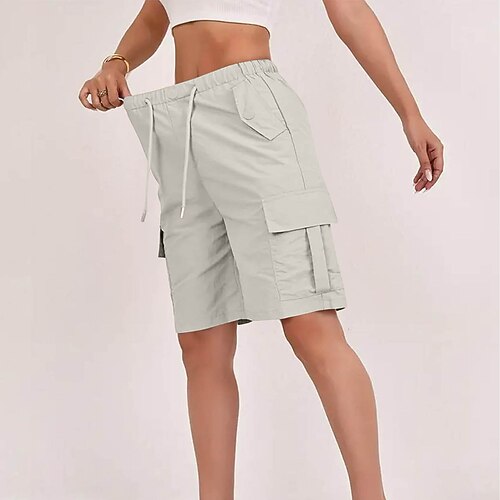 Damen Bermudashorts Cargo-Shorts Chinos Shorts Urlaub Streetwear Lässig Kurz Mittlere Taillenlinie Einfach Kordelzug Tasche Bequem Unelastisch Täglich Outdoor Urlaub Weinrot Aprikose Dunkelgrau