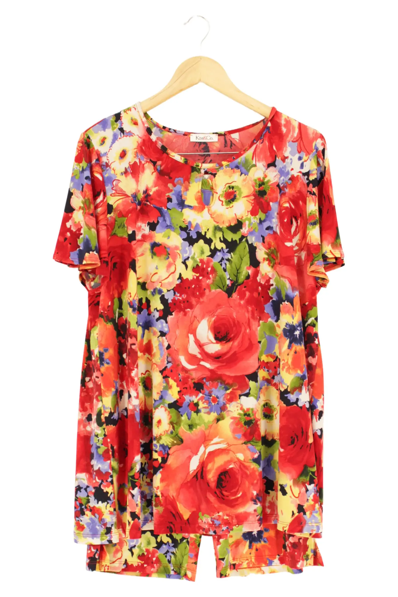 KIM & CO. festliches Kleid Damen 38 M rot gelb blau Blumen