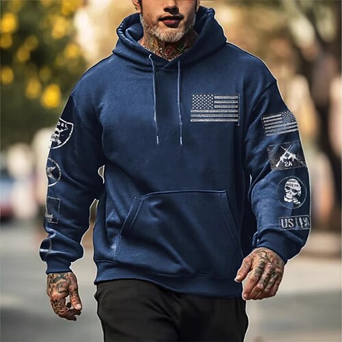 Per uomo Stampe Grafiche Bandiera Nazionale Felpa con Cappuccio Moda Quotidiano Casual Manica Lunga Con Cappuccio Vacanza Feste Abbigliamento casual alla moda Festival Nero Bianco Blu reale Marrone