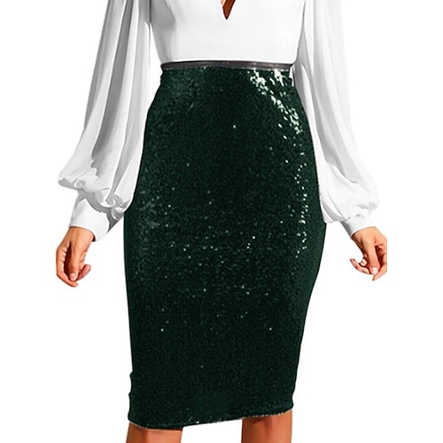 Per donna Gonna Aderente Elegante Moda Lunghezza al ginocchio Vita Alta Gonne Semplice Paillettes Micro-elastico Feste Streetwear Vinaccia Nero Verde scuro Grigio scuro Primavera Poliestere