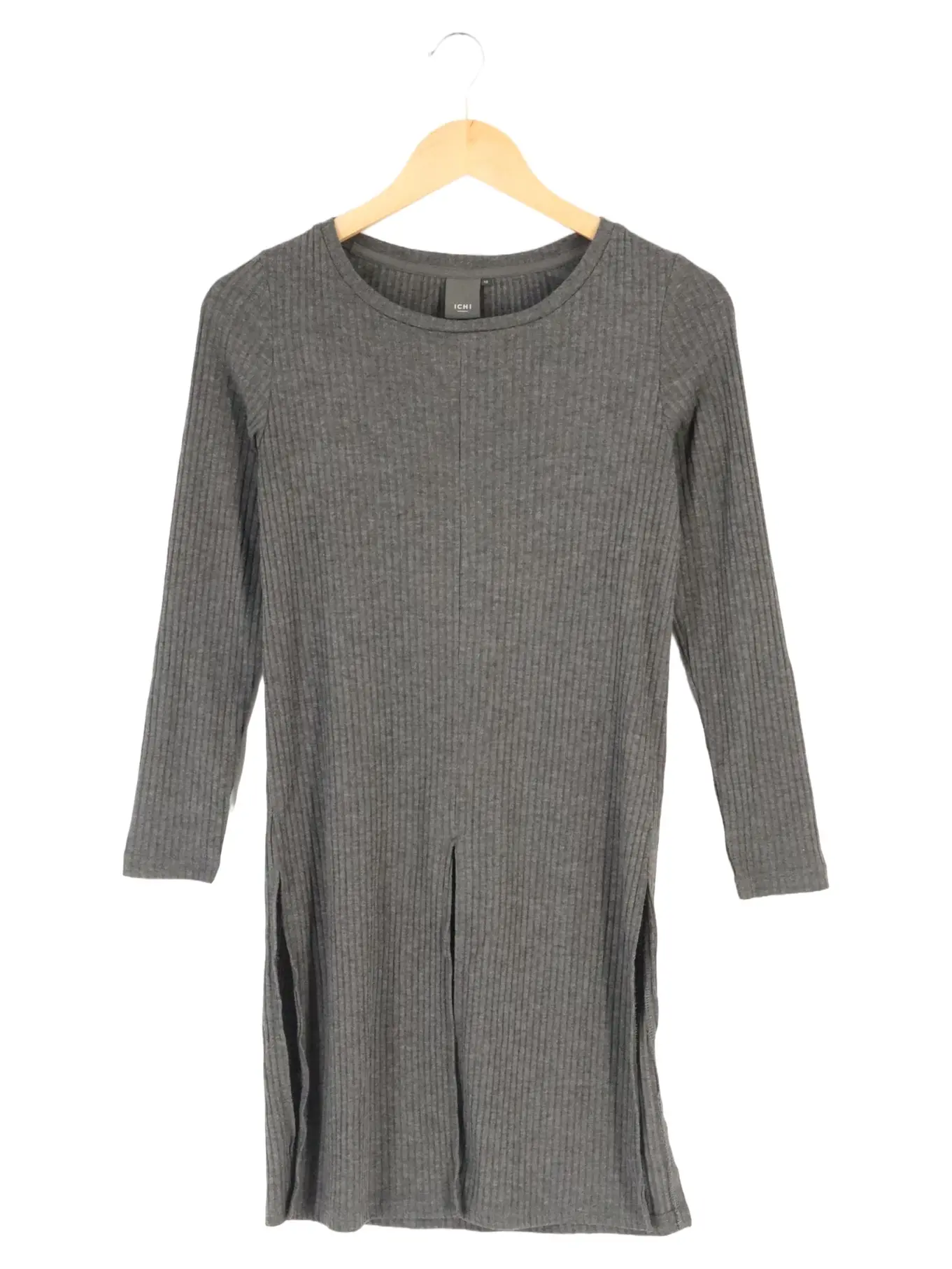 ICHI Damen Strickkleid Midi Grau Größe XS Basic Look