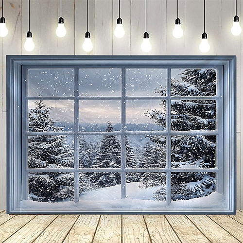 arazzo con motivo di finestra con paesaggio innevato, grande decorazione murale da appendere alla parete, tessuto per sfondo fotografico, arredamento per la casa per camera da letto, soggiorno o
