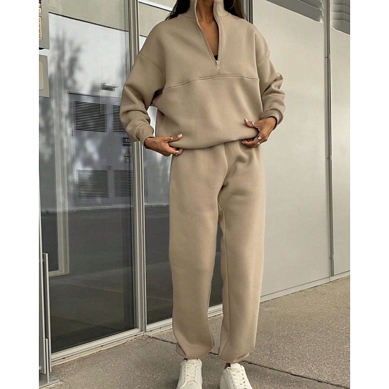 Women's Fashion Streetwear Two Piece Sets Tracksuit Pants Sets Long Sleeve Stand Collar Solid Color Drawstring Casual Daily Outdoor Black Pink Wine Fall Regular Fit