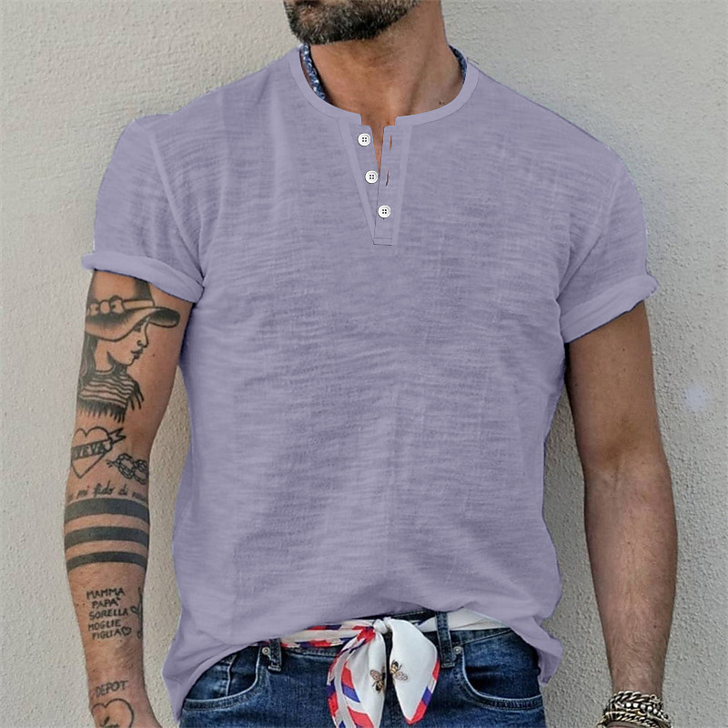 Men's T shirt Tee Henley Shirt Plain Henley Street Holiday Short Sleeve Clothing Apparel Fashion Casual Comfortable