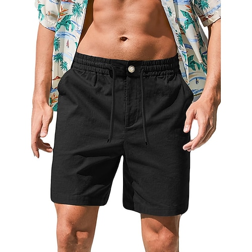 Per uomo Shorts Shorts di Lino Pantaloncini Estivi Tasca Elastico in vita Coulisse Semplice All'aperto Quotidiano Uscire Vacanza Casual Nero Bianco