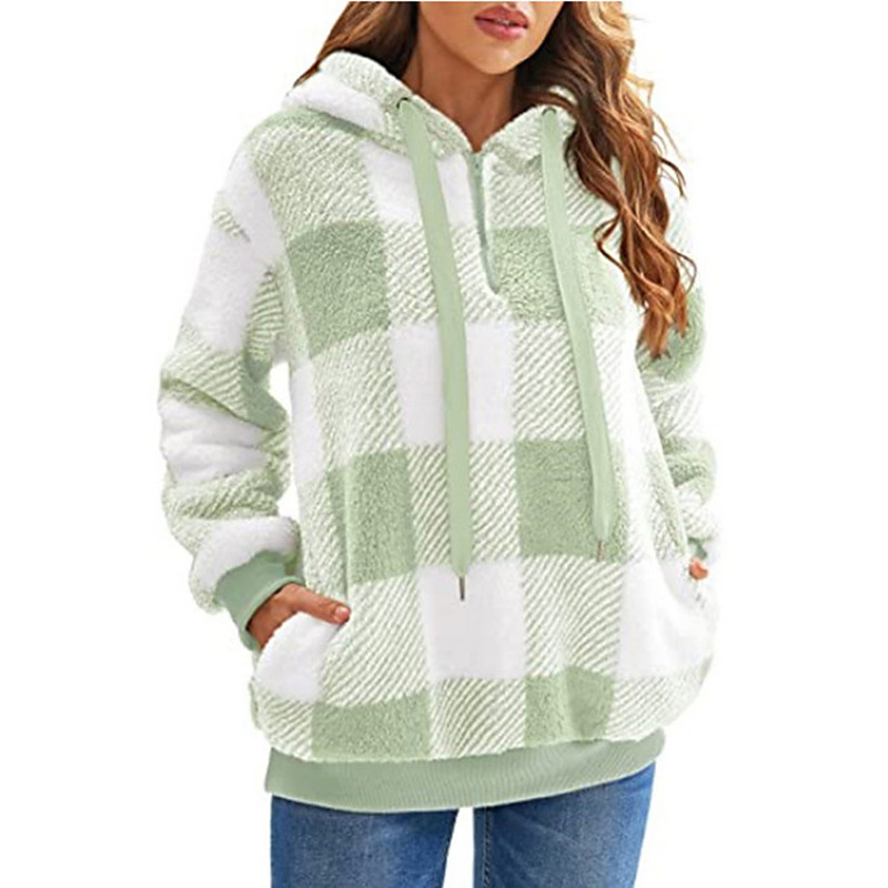Women's Pullover Hoodie Sweatshirt Plaid Streetwear Casual Long Sleeve Hooded Regular Tops Street Holiday Going out Pocket Black Light Green Pink Red Blue Fall Winter
