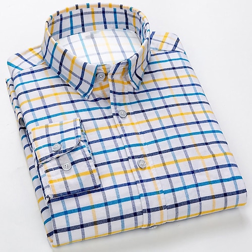 Herren Hemd Oberhemd Knopfhemd Plaid Hochzeit Party Hellblau Marineblau Weiß Hellblau-Ginghem Königliches Blau Langarm Kargen Frühling Herbst Bekleidung Tasche