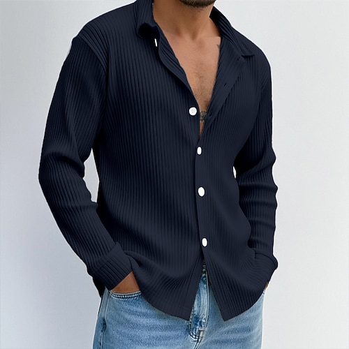 Per uomo Camicia Maglia a coste Camicia casual Camicia con colletto alla coreana Camicia con Bottoni Bianco Blu reale Grigio Azzurro Manica Lunga Semplice Colletto Casuale Quotidiano Abbigliamento