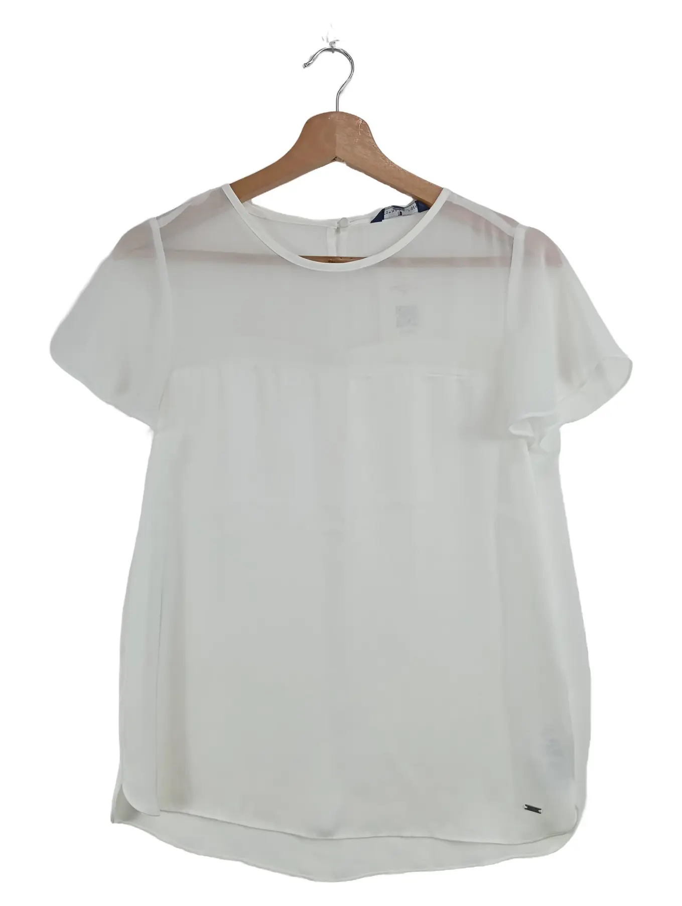 T-Shirt TOMMY HILFIGER "SLIM CODY V-NK SS mit V-Ausschnitt und Streifen", Damen, Gr. XS (34), frozen custard, Jersey, Obermaterial: 100% Baumwolle, unifarben, slim fit hüftlang, tiefer V-Ausschnitt, abgesteppt, Shirts T-Shirt, Baumwolle, slim fit