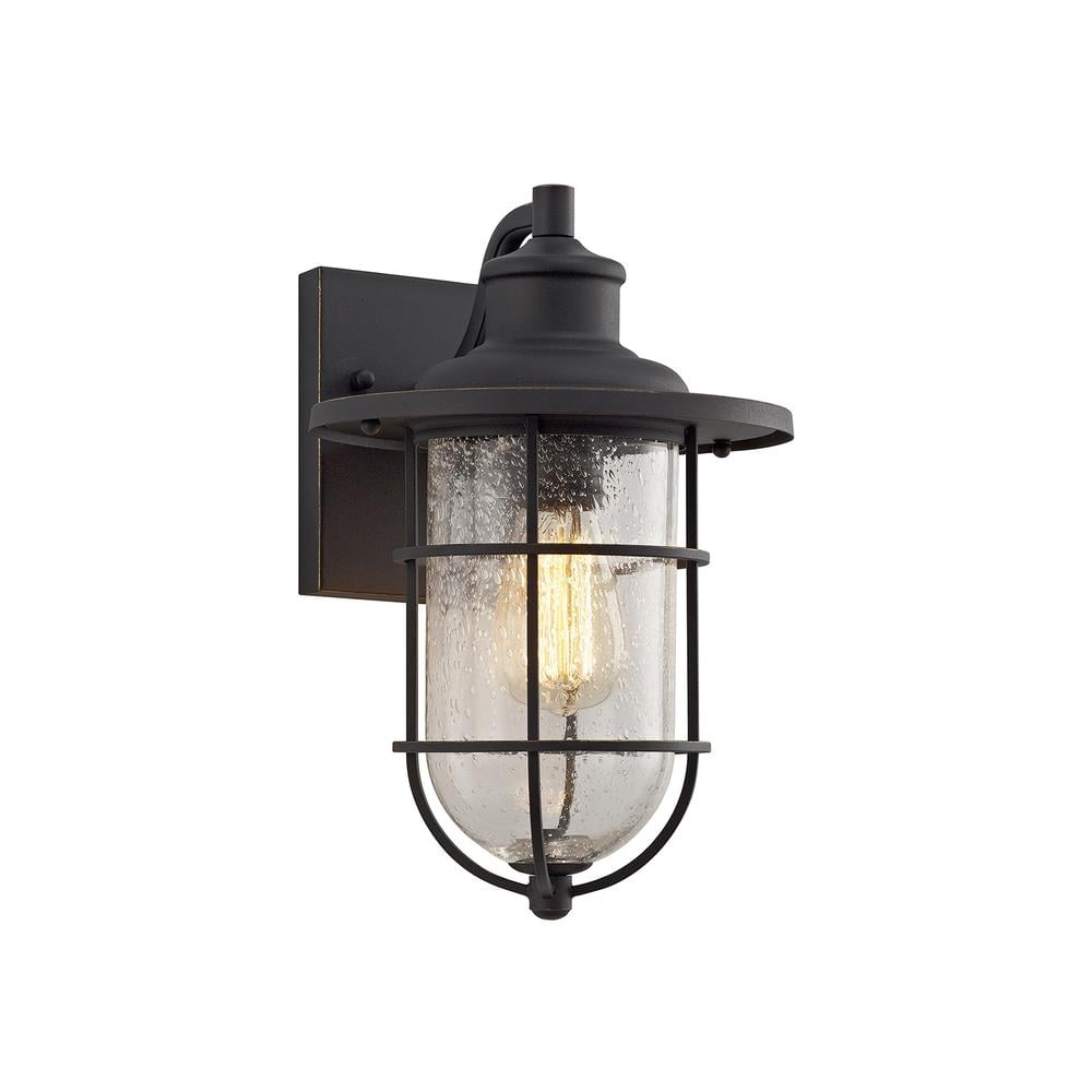 Arcus Wall Light 1xE27 Black/Gold With Seeded Clear Glass IP54 Luxuria