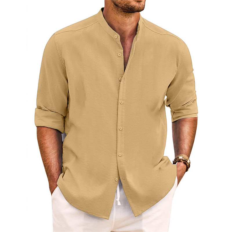 Men's Shirt Summer Shirt Beach Wear Casual Shirt Band Collar Shirt Button Up Shirt Plain Vacation Casual Black White Pink Green Long Sleeve Band Collar Spring Summer Clothing Apparel