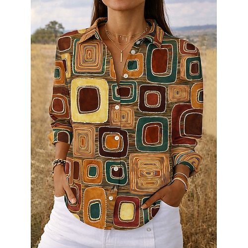 Per donna Camicia Grafico Geometrico Elegante Vintage Tropicale Manica Lunga Colletto a Camicia Top Regolari Quotidiano Lavoro Bottoni Stampato Bianco Giallo Arancione Marrone Estate Primavera Autunno