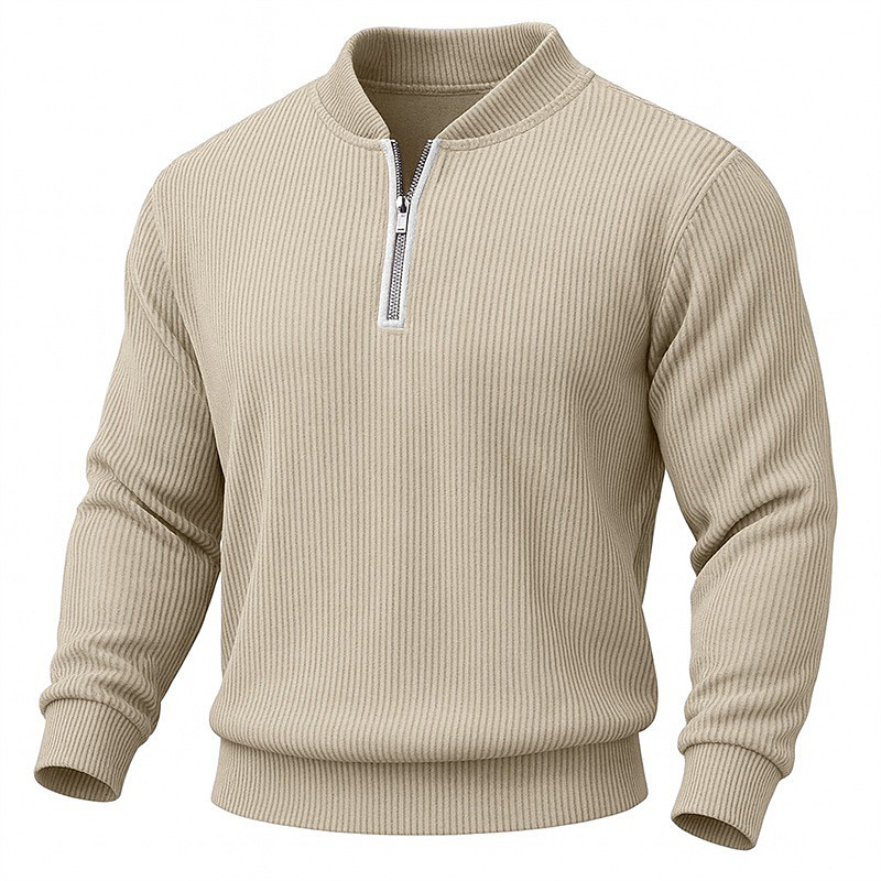 Men's Sweatshirt Corduroy Pullover Hoodie Sweatshirt Pullover Quarter Zip Sweatshirt Apricot Dark Green Green Dark Gray Light Blue Standing Collar Plain Textured Casual Daily Sports Outdoor