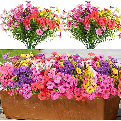 Fiori viola artificiali per esterni, 12/24 mazzi di fiori finti in seta resistenti ai raggi UV per esterni, fiori primaverili artificiali per vasi da esterno, decorazioni per giardino interno, casa,