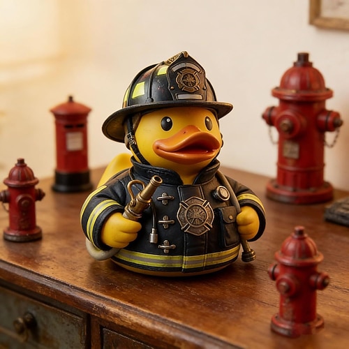 Papera eroe pompiere, divertente papera di gomma eroe pompiere, paperelle di gomma pompiere in resina, figure di paperelle eroi pompiere decorative per scrivanie, caserme dei pompieri, scaffali o