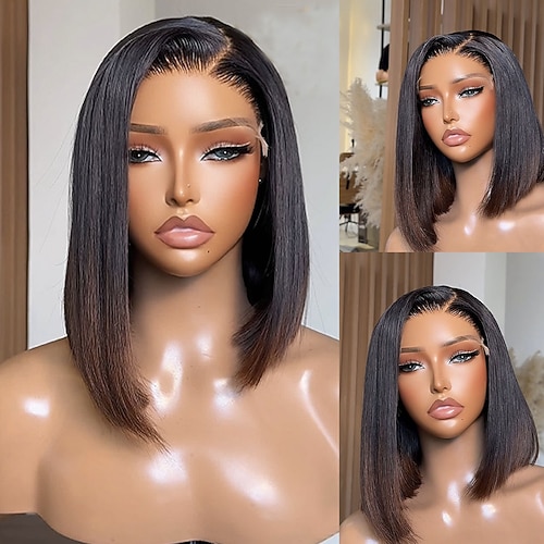 Capelli umani 5x5 Chiusura 13x4 Fronte in Pizzo Parrucca Caschetto corto Capelli brasiliani Liscio Naturale Parrucca 150% 180% Densità dei capelli con Capelli di Bambino Capelli schiariti Attaccatura