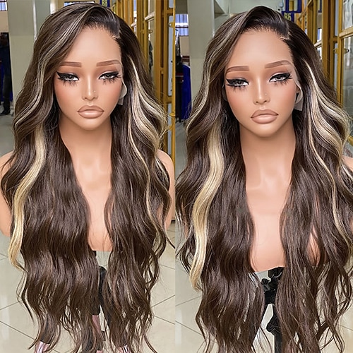 Capelli umani di Remy 13x4 Pizzo Frontale Parrucca Parte di mezzo Brasiliano Ondulato Multicolore Parrucca 130% 150% Densità dei capelli Colore Graduale e Sfumato Capelli schiariti Capelli