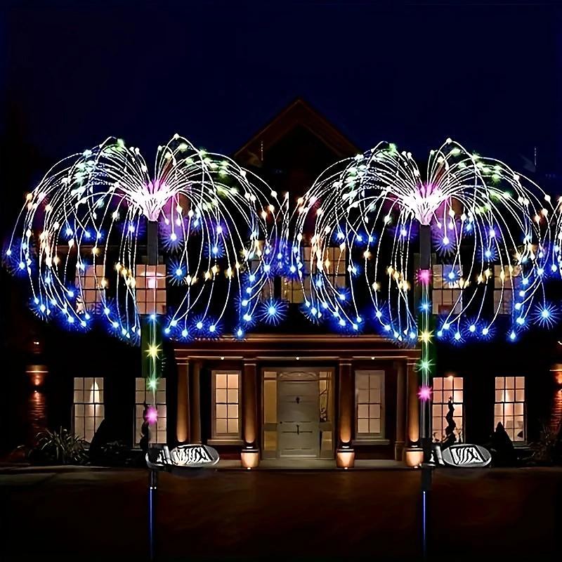 2 Pcs Outdoor Solar Fireworks Ground Plug in Light 90LED Beads Courtyard Garden Lawn Path Festival Wedding Atmosphere Decorative Light