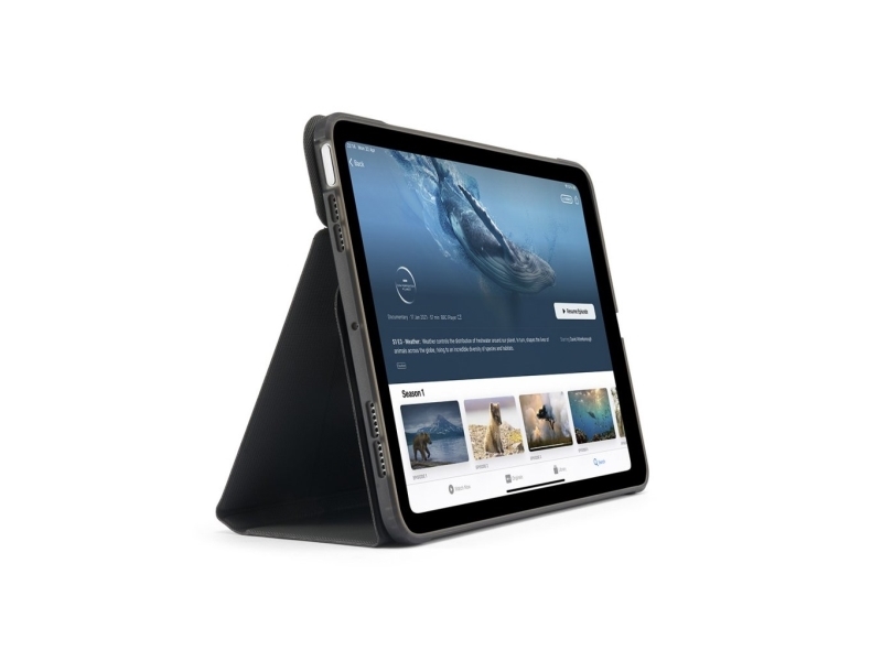 Pipetto Origami No6 kotelo jalustalla iPad Air 11 (2024) / iPad Air 10.9 (2022/2020) - musta