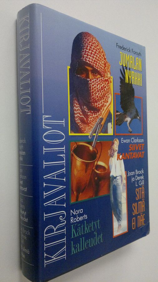 Kirjavaliot : Forsyth, Frederick : Jumalan nyrkki ; Clarkson, Ewan : Siivet kantavat ; Roberts, Nora : Kätketyt kalleudet ; Brock, Joan & Gill, Derek