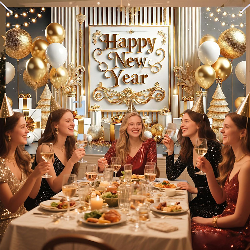 New Year Tapestry Banners Blanket Happy New Year 2026 Cute Romantic 3D Bedroom Living Room Dorm Teens Room College Dorm Wall Porch Home Decor