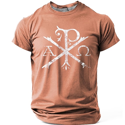 Herren Bibel Chi Rho Alpha Symbol Christogramm Christliche Bibel Religiös Vintage Abgerissenes T-Shirt Grafik Lässig Kurzarm Kirche Kleidung Designer Kleidung Apparel