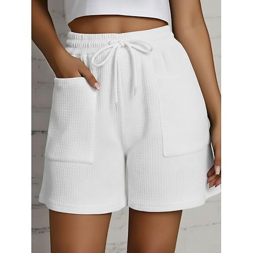 Damen Bermudashorts Chinos Shorts Urlaub Basic Komfort Kurz Hohe Taille Einfach Kordelzug Tasche Gestrickt Komfort Dehnbar Täglich Weiß Armeegrün Sommer Frühling Normale Passform
