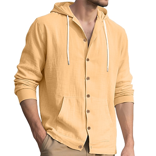 Per uomo Camicia Camicia di lino Camicia Estiva Abbigliamento da spiaggia Camicia con cappuccio Tinta unica Vacanza Streetwear Nero Bianco Giallo Blu marino Manica Lunga Colletto a Camicia Estate
