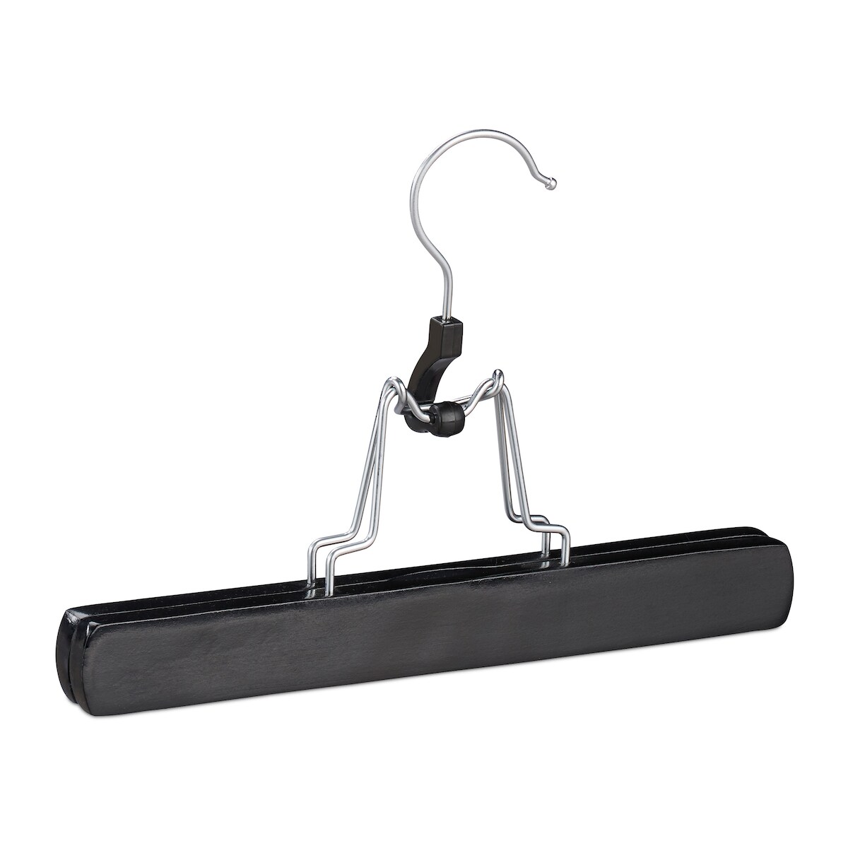 Relaxdays Hosenspanner Holz, 12 Stück, 360° drehbarer Haken, Filzschutz, HBT 17 x 25 x 2,3cm, Kleiderbügel Hose, schwarz