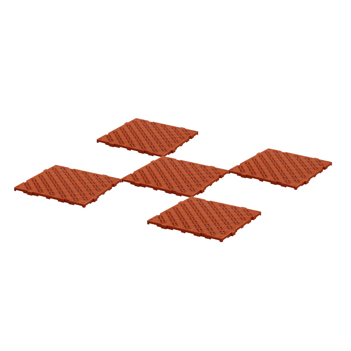 5 Stück Kunststoff Bodenrost Bodenplatte für Sauna/Garten/Poolbereich 500 x 500 x 25 mm Rot-Braun