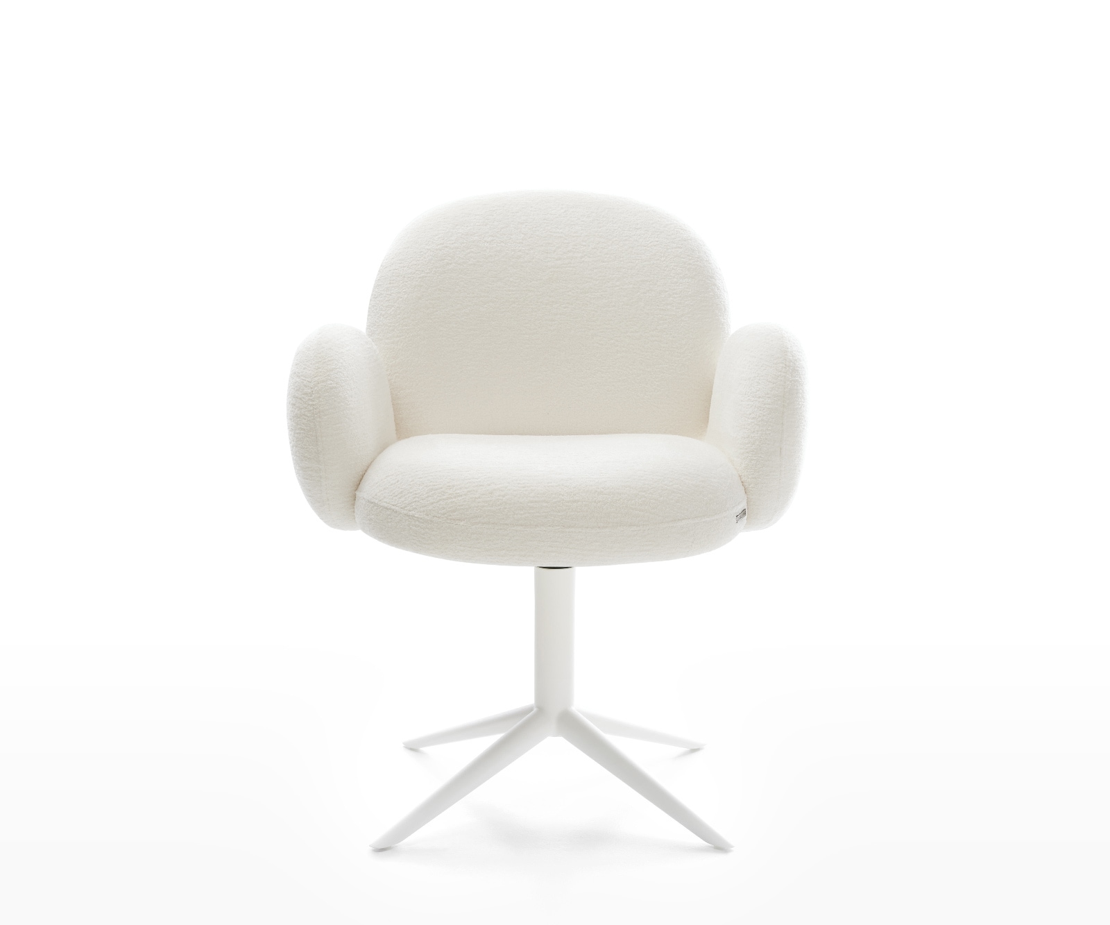 DELIFE Draaistoel Nube-Flex met armleuning bouclé zacht beige kruispoot wit 360° draaibaar rocker-functie pocketveer kern