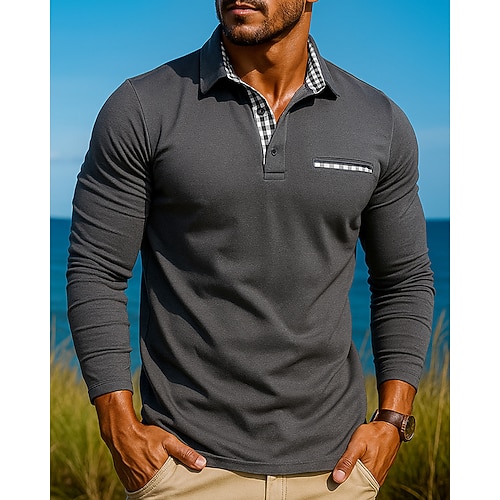 Per uomo Polo da golf Manica Lunga Collo ripiegato Top Esterno Traspirante Poliestere Nero Verde militare Rosso Tennis Golf Corsa