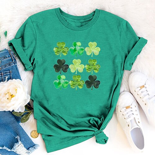 Giorno di San Patrizio Festa di San Patrizio Per donna Maglietta Foglia Giorno di San Patrizio Manica Corta Girocollo Top Regolari Ferie Weekend Stampato Blu Nero Bianco Verde Grigio chiaro