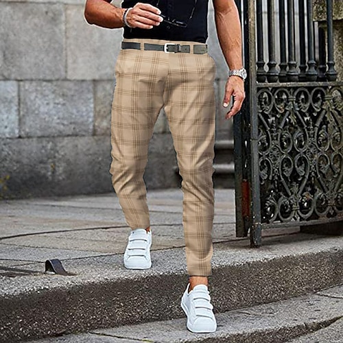 Per uomo Pantaloni Chino Pantaloni da jogger Pantaloni eleganti scozzesi Tasche Reticolo Traspirante Morbido Attività commerciale Informale Giornaliero Di tendenza Streetwear Nero Verde chiaro