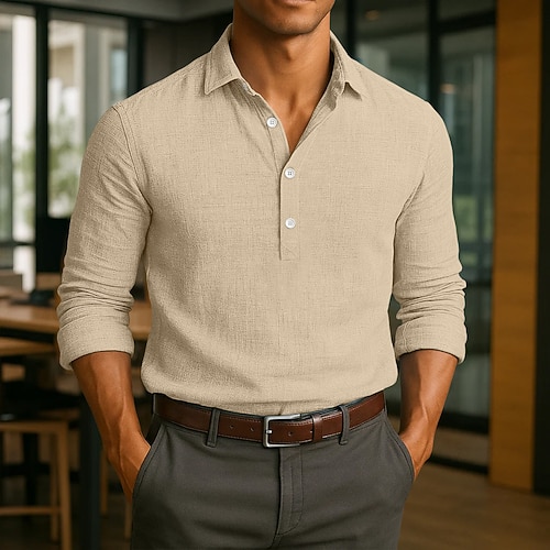 Per uomo Camicia Camicia di lino Camicia Estiva Abbigliamento da spiaggia Semplice Vacanza Casuale Nero Bianco Blu Verde Manica Lunga Bavero Estate Primavera Abbigliamento Puro