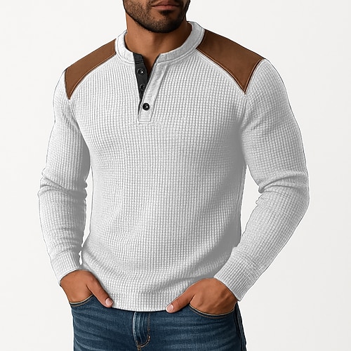Per uomo Maglia Nero Bianco Verde militare Cachi Grigio Colletto Mao Blocco di colori Patchwork A coste Testurizzato Sport Outdoor Quotidiano Ferie Poliestere Testurizzato Streetwear Essenziale