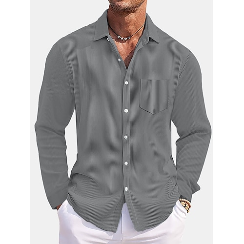 Per uomo Camicia Camicia casual Camicia di Velluto a Coste Camicia con Bottoni Blu Nero Bianco Rosso Blu marino Manica Lunga Semplice Collo ripiegato Casuale All'aperto Tasca Abbigliamento Moda Casual
