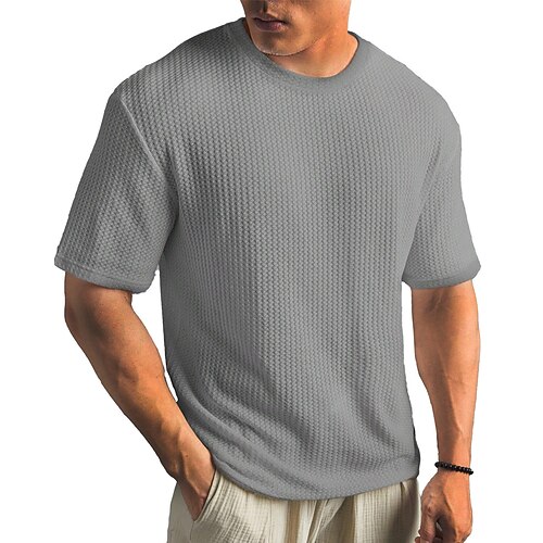 Per uomo Maglietta a Maglia Waffle Maglietta Manica Corta Scollo a V Estate Testurizzato Moda Designer Confortevole Patchwork Tasca Blocco di colore Casuale Quotidiano All'aperto Blu chiaro Nero Viola