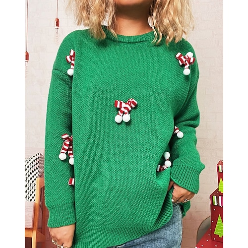 Per donna Felpa Maglione Pom Pom regalo di Natale Streetwear Floreale Girocollo Lavorato a maglia Stampato Manica Lunga Top Regolari Maglia Natale Ferie Uscire Nero Rosso Autunno Inverno