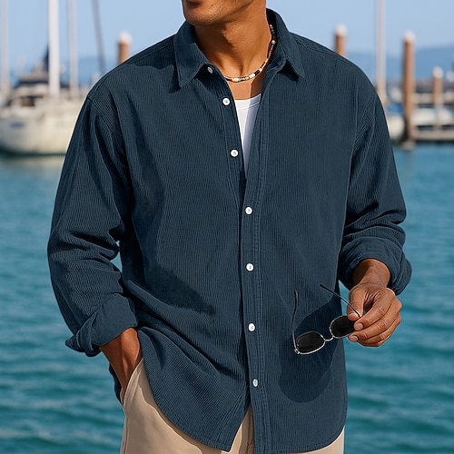 Per uomo Camicia Camicia casual Camicia di Velluto a Coste Camicia con Bottoni Blu Nero Bianco Blu marino Marrone Manica Lunga Semplice Collo ripiegato Casuale All'aperto Caldo Abbigliamento Vacanza