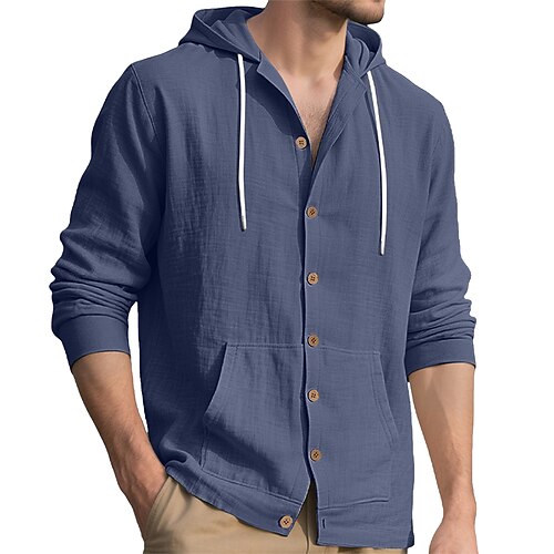 Per uomo Camicia Camicia di lino Camicia Estiva Abbigliamento da spiaggia Camicia con cappuccio Tinta unica Vacanza Streetwear Nero Bianco Giallo Blu marino Manica Lunga Colletto a Camicia Estate