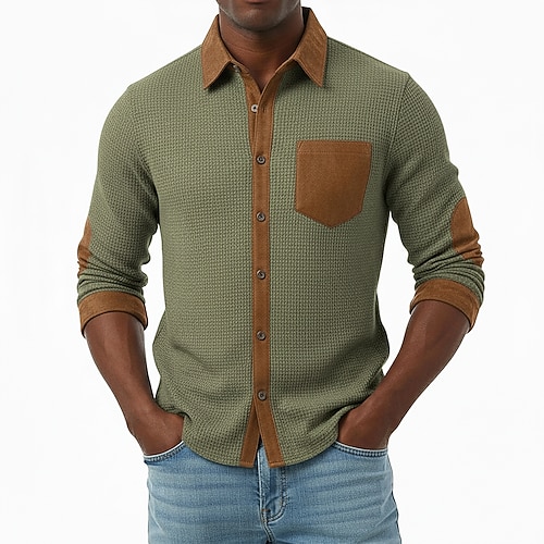 Per uomo Camicia Camicia a nido d'ape Camicia casual Camicia vintage Camicia con Bottoni Nero Blu marino Verde militare Grigio Manica Lunga Testurizzato Bavero Casuale Quotidiano Blocco di colore
