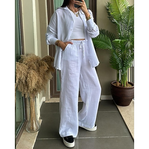 Per donna Moda Streetwear Camicia Set di Pantaloni Bolero Top Manica Lunga Colletto a Camicia Semplice Casuale Quotidiano All'aperto Blu Nero Bianco Primavera Vestibilità regolare