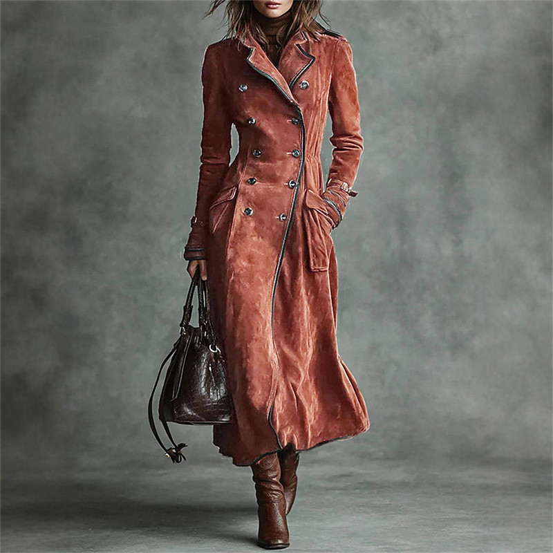 Women's Winter Coat Coat Suits Warm Comfortable Pocket Buttons Fashion Casual Plaid Vacation Daily Wear Going out Weekend Long Notch Lapel Regular Fit Long Sleeve Outerwear Brown Fall Winter